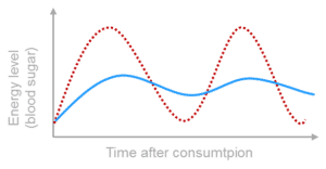 Isomaltulose is different from common “fast” sugars. As a slow release carbohydrate, it supplies the body with carbohydrate energy in a more balanced and sustained way, causing less ups and downs in blood sugar levels. Such lower blood sugar excursions over the day with isomaltulose-containing foods and meals have been demonstrated in continuous glucose monitoring studies by Henry et al (2017) and Kahlhöfer et al (2016). Hence, isomaltulose can help stabilize blood sugar spikes and maintain energy levels better during the work day.
