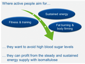 Those active people look for sustained energy to keep going during sports and busy work days, they aim for fitness and training effects, or for fat burning and body firming to look lean and sporty. In all cases, they do not need fast carbohydrates for their energy needs. Looking for foods and drinks that supply the energy continuously without high blood sugar rise and without suppressing fat burning would be the better choice instead. Isomaltulose is such a carbohydrate.